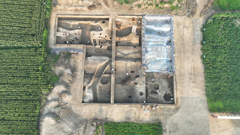 朱丘寺遺址考古發(fā)掘現(xiàn)場(chǎng)航拍圖