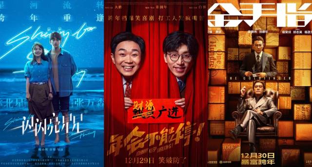 目前跨年檔票房排名前三的影片分別為《一閃一閃亮星星》《年會(huì)不能停!》《金手指》。