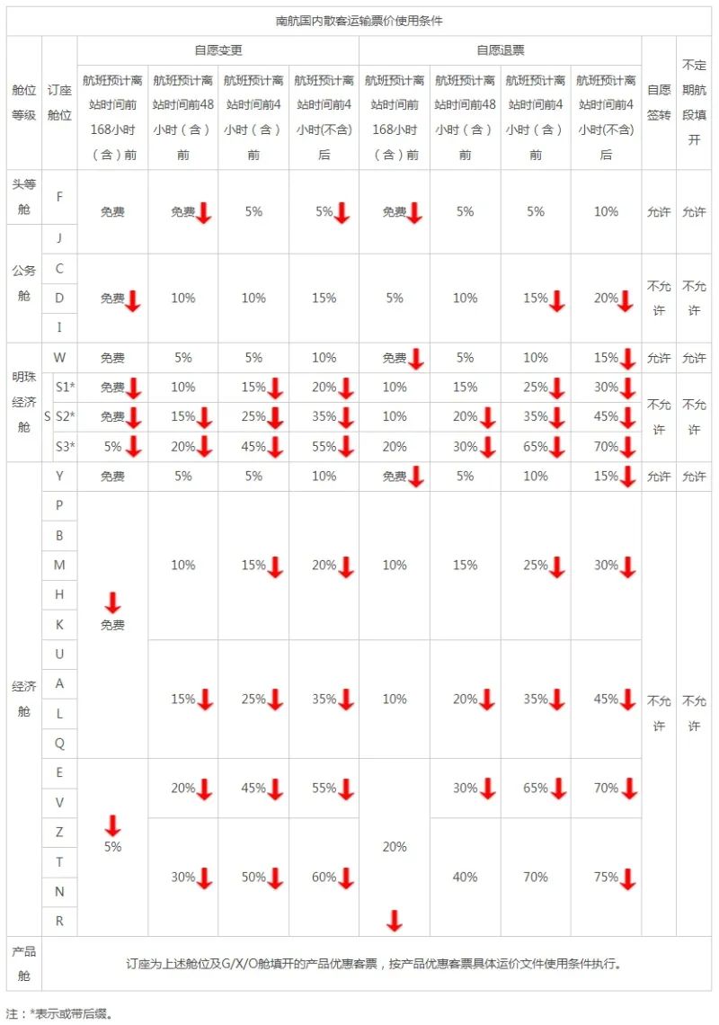 本使用條件適用于1月10日(含)起銷售的1月10日(含)后旅行客票使用(適用除北京大興機(jī)場、成都天府機(jī)場以外其他市場)。圖中紅色箭頭為新標(biāo)準(zhǔn)下調(diào)部分。