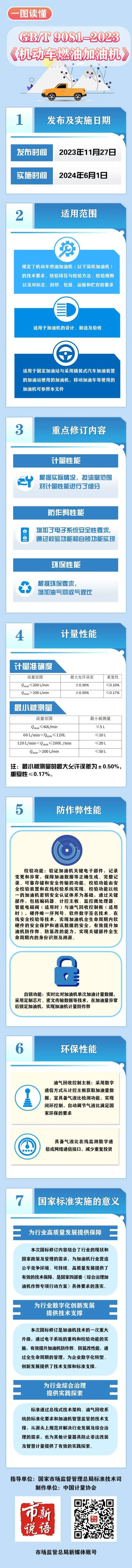 《機(jī)動(dòng)車(chē)燃油加油機(jī)》國(guó)家標(biāo)準(zhǔn)將于2024年6月1日正式實(shí)施。標(biāo)準(zhǔn)規(guī)定了機(jī)動(dòng)車(chē)燃油加油機(jī)的技術(shù)要求、檢驗(yàn)項(xiàng)目與檢驗(yàn)方法、檢驗(yàn)規(guī)則以及對(duì)標(biāo)志、封印、包裝、運(yùn)輸和貯存的要求。增加了電子系統(tǒng)安全性要求,實(shí)現(xiàn)了加油機(jī)全生命周期內(nèi)軟硬件的安全保護(hù)和通訊數(shù)據(jù)的安全,有效提升加油機(jī)防作弊、防篡改的能力,實(shí)現(xiàn)關(guān)鍵部件全生命周期內(nèi)的身份識(shí)別及溯源;實(shí)時(shí)比對(duì)加油機(jī)單次加油計(jì)量數(shù)據(jù),采用定制芯片、密文傳輸數(shù)據(jù)等技術(shù),在加油量異常后鎖定加油機(jī),實(shí)現(xiàn)加油機(jī)計(jì)量防作弊。