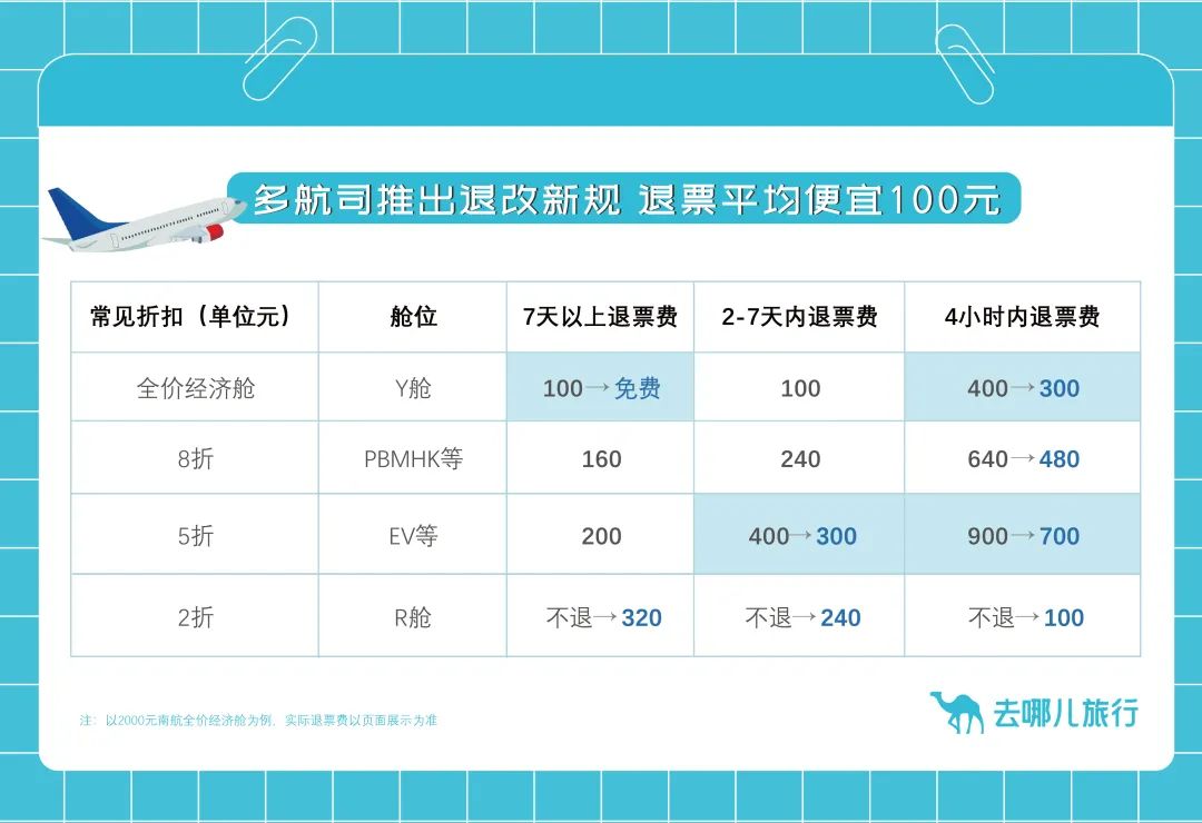 退票較舊規(guī)則平均節(jié)省100元。