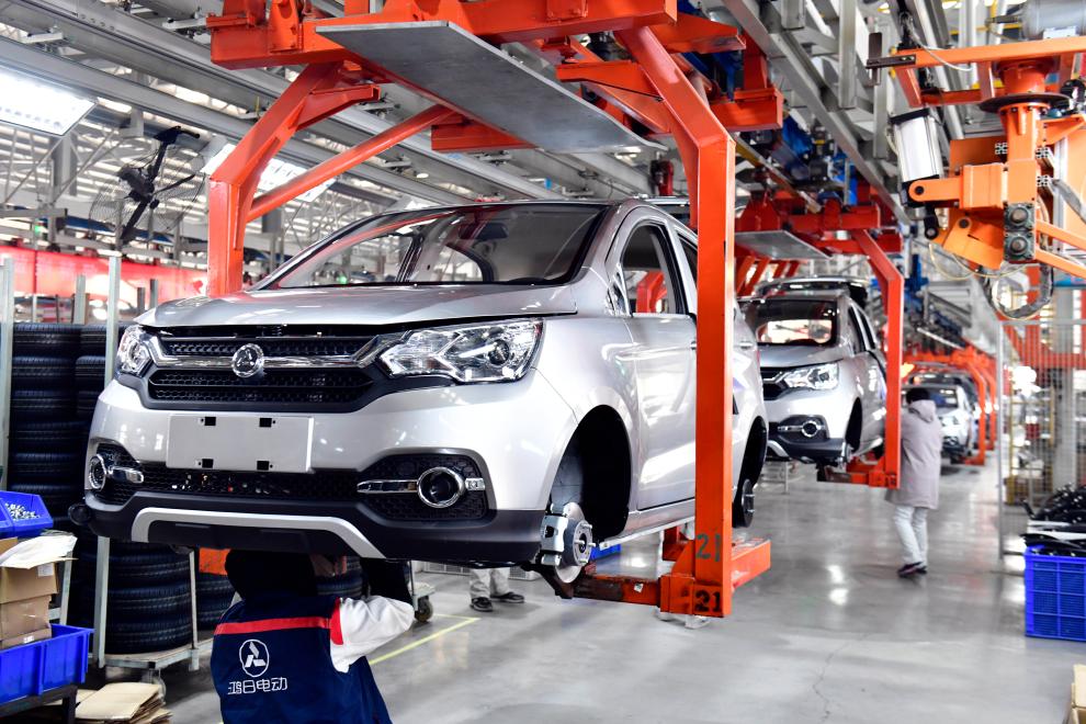 ??2024年1月12日,在日照鴻日新能源汽車(chē)有限公司,工作人員在整車(chē)生產(chǎn)線上忙碌。新華社記者 郭緒雷 攝