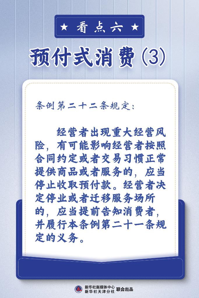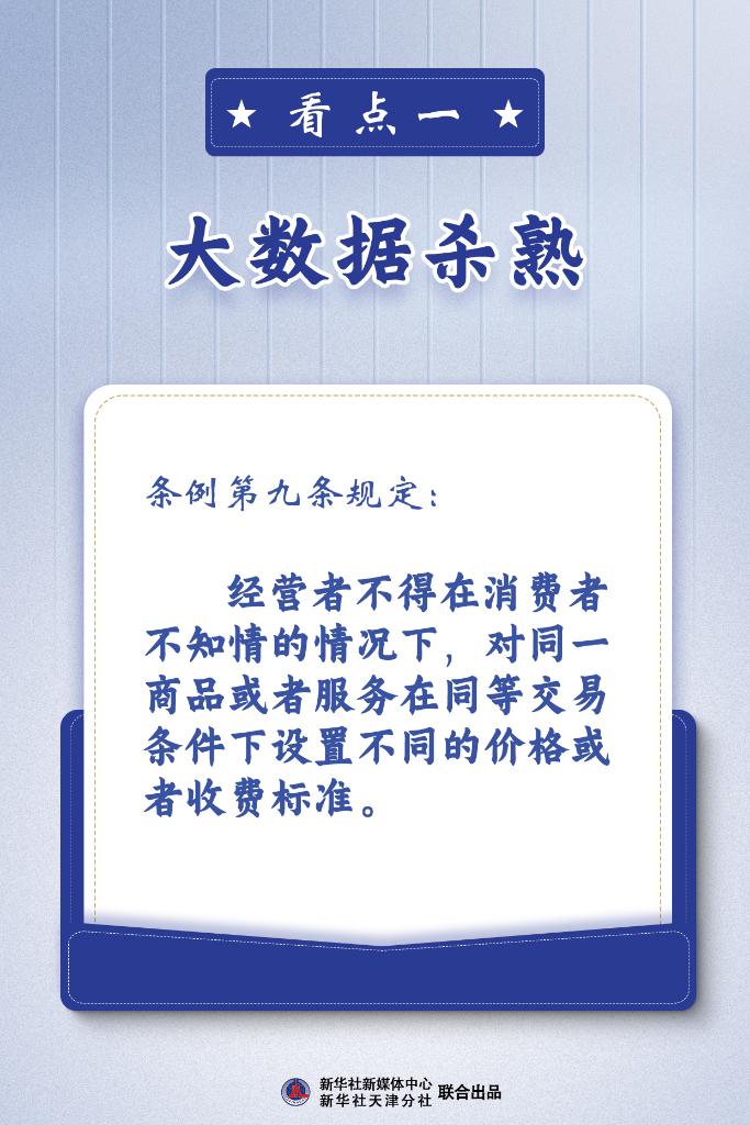 新華社天津6月29日電(記者白佳麗)消費(fèi)者權(quán)益保護(hù),事關(guān)億萬消費(fèi)者的福祉!吨腥A人民共和國消費(fèi)者權(quán)益保護(hù)法實(shí)施條例》將于今年7月1日正式施行。條例對大數(shù)據(jù)殺熟、自動(dòng)續(xù)費(fèi)難取消、預(yù)付式消費(fèi)商家跑路等備受消費(fèi)者關(guān)注的問題,進(jìn)行了明確規(guī)定。記者梳理8大看點(diǎn),帶您讀懂條例。