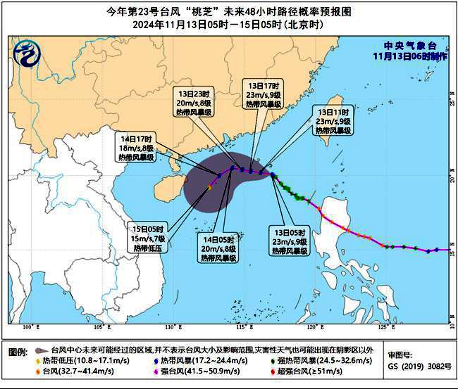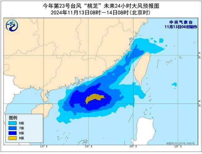 中央氣象臺11月13日06時繼續(xù)發(fā)布臺風藍色預警: