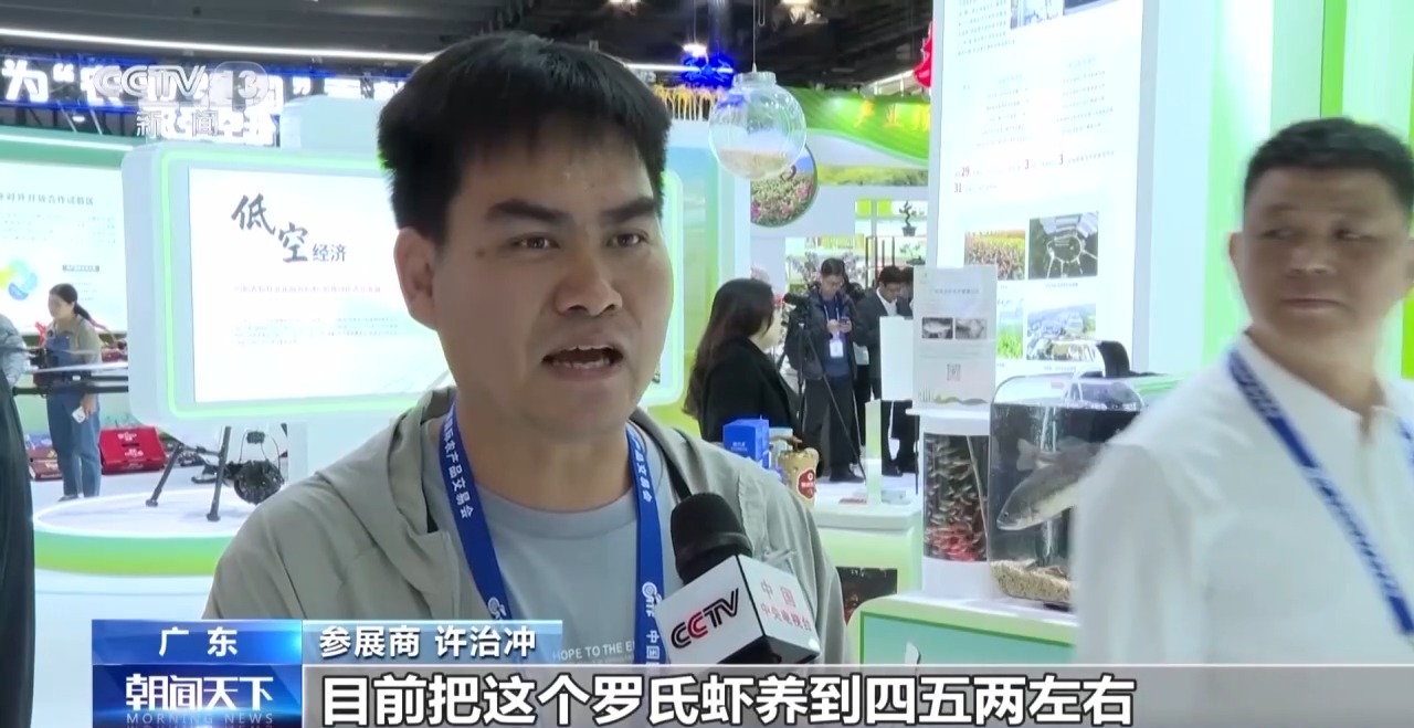 本屆農(nóng)交會(huì)共設(shè)有省區(qū)市品牌農(nóng)產(chǎn)品、鄉(xiāng)村幫扶產(chǎn)業(yè)精品、智慧農(nóng)業(yè)等12個(gè)展區(qū),重點(diǎn)聚焦促進(jìn)貿(mào)易等4方面內(nèi)容。廣東是我國(guó)最大的水產(chǎn)養(yǎng)殖省份,在現(xiàn)場(chǎng)不僅展示了科技感十足的AI養(yǎng)蝦應(yīng)用設(shè)備,參展商還帶來(lái)了經(jīng)過(guò)多年選育的大個(gè)頭羅氏蝦。