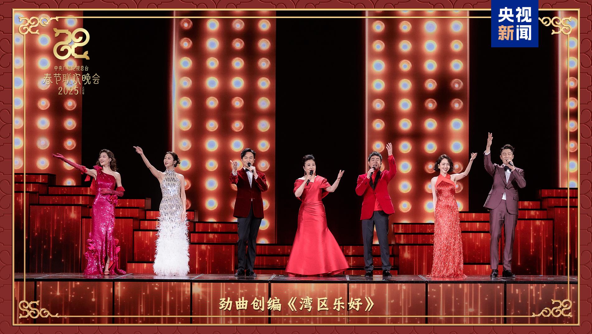 同心同向,血脈相連。汪明荃、陳小春、張智霖、薛凱琪、周柏豪、劉惜君、鐘楚曦等來自粵港澳大灣區(qū)的歌手演員們,以一首勁曲創(chuàng)編《灣區(qū)樂好》帶來《海闊天空》《萬水千山總是情》等耳熟能詳?shù)慕?jīng)典粵語金曲。楊宗緯、容祖兒、羅嘉豪、郁可唯等海峽兩岸及香港、澳門的歌手共同演繹歌曲《如意》,唱出相扶相依、彼此祝福的深切情意。“如意球”隨著歌聲升空飛往萬戶千家,也將“所愿皆所成”的祝福送給全球中華兒女。