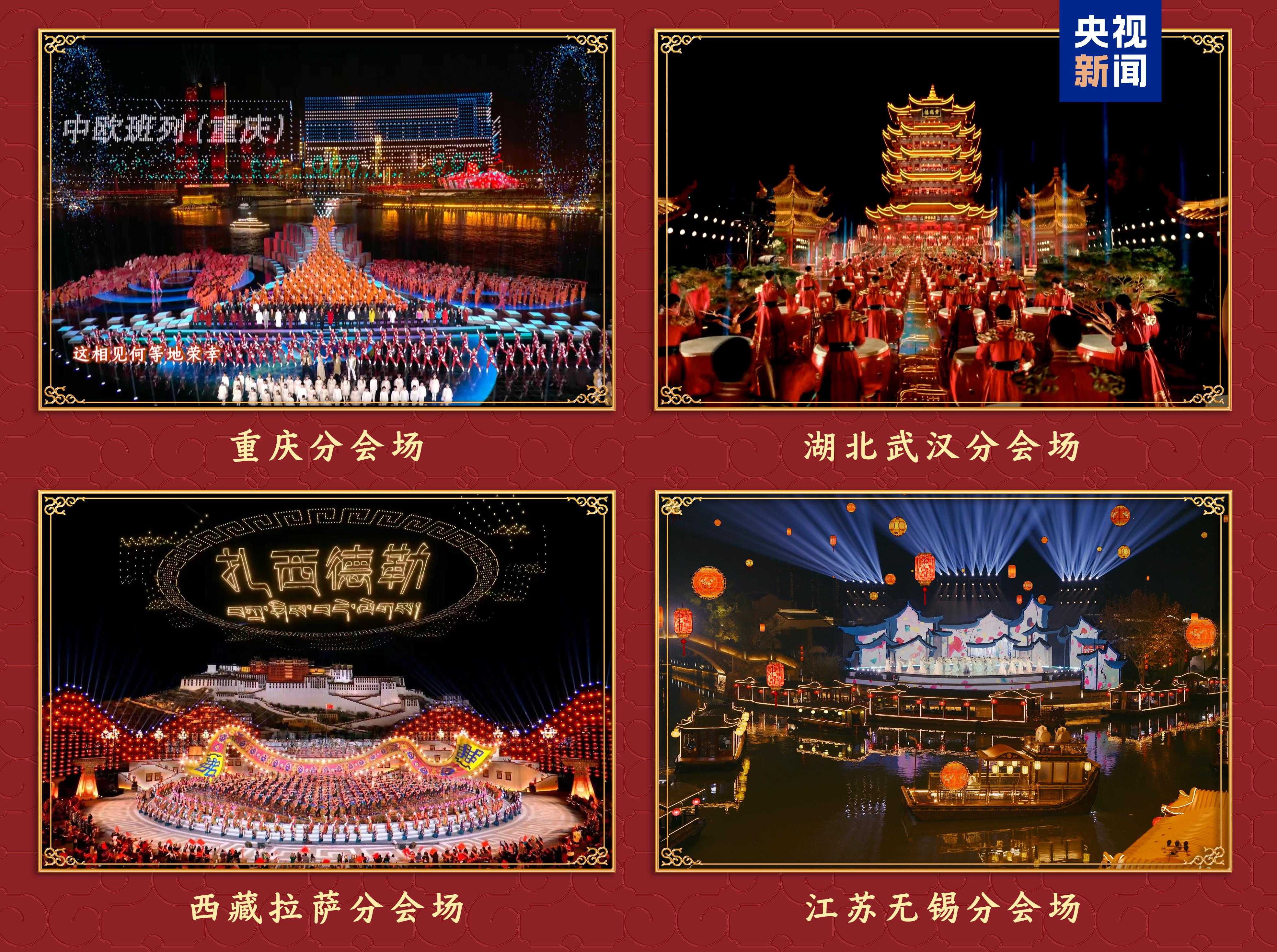 重慶、湖北武漢、西藏拉薩、江蘇無錫四地分會(huì)場遙相呼應(yīng),一幅幅獨(dú)具城市魅力的畫卷,勾勒出祖國山河的壯麗圖景。重慶分會(huì)場以“慶·新春”為主題,千廝門大橋的“新春新潮夜”情景音樂秀、780輛新能源汽車智控?zé)絷嚭?000架無人機(jī)編組的光影聯(lián)動(dòng),展現(xiàn)山城8D立體的無限魅力。湖北武漢分會(huì)場《星漢耀江城》煙火氣濃郁、人情味滿滿,新派戲曲將京、楚、漢三劇種融匯編創(chuàng),雜技與傳統(tǒng)楚樂創(chuàng)意呈現(xiàn),鳳凰圖騰振翅欲飛,“英雄城市”深厚的文化底蘊(yùn)和大江大湖的豪爽之氣一覽無遺。西藏拉薩分會(huì)場千人鼓潮融匯熱巴舞、卓舞等西藏傳統(tǒng)舞蹈,才旦卓瑪領(lǐng)銜唱出中華民族一家親的團(tuán)圓景象;現(xiàn)場還為定日縣送去誠摯祝福,表達(dá)出人民至上、風(fēng)雨同舟、重建美麗新家園的堅(jiān)定信心;那曲薩普雪山、昌都來古冰川等自然風(fēng)光遼闊壯美,令人神往。江蘇無錫分會(huì)場在江南水鄉(xiāng)上演一場穿越古今的《無錫景·家國情》,曲水穿城而過,評(píng)彈曲調(diào)婉轉(zhuǎn)流長,文人墨客揮毫潑墨,千年運(yùn)河之上千帆競發(fā),在源遠(yuǎn)流長的文化與磅礴的工業(yè)力量中展現(xiàn)“太湖明珠”的豐沛迷人。
