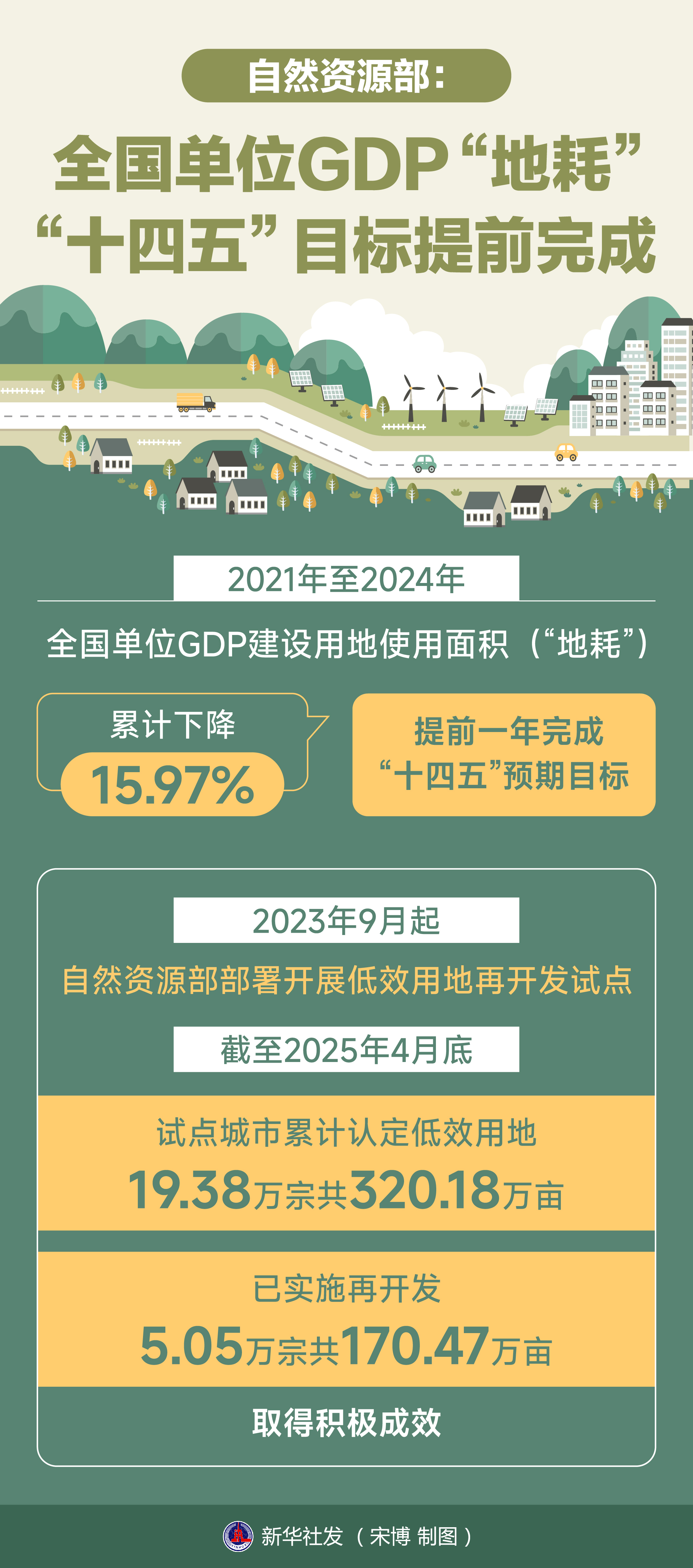 新華社武漢6月25日電(記者張陽)2021年至2024年,全國單位GDP建設(shè)用地使用面積(“地耗”)累計下降15.97%,提前一年完成“十四五”預(yù)期目標。其中2021年至2024年,湖北省單位GDP“地耗”累計下降率為21.99%,為全國第一。