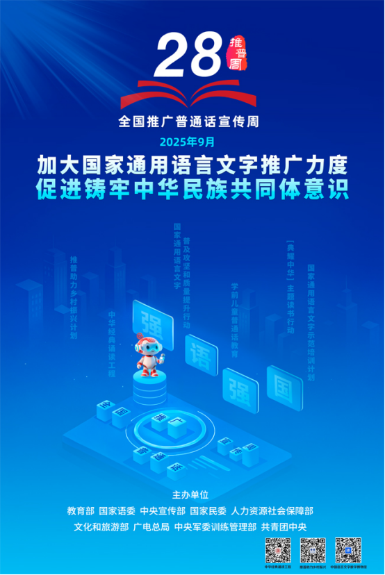 經(jīng)國務(wù)院批準(zhǔn),自1998年起,每年9月第三周為全國推廣普通話宣傳周。今年9月15日至9月21日是第28屆全國推廣普通話宣傳周,主題為“加大國家通用語言文字推廣力度,促進(jìn)鑄牢中華民族共同體意識(shí)”。