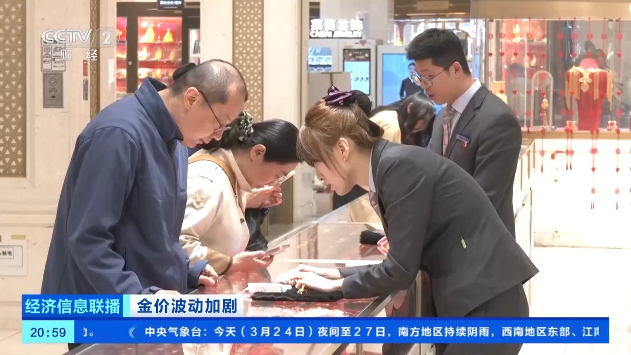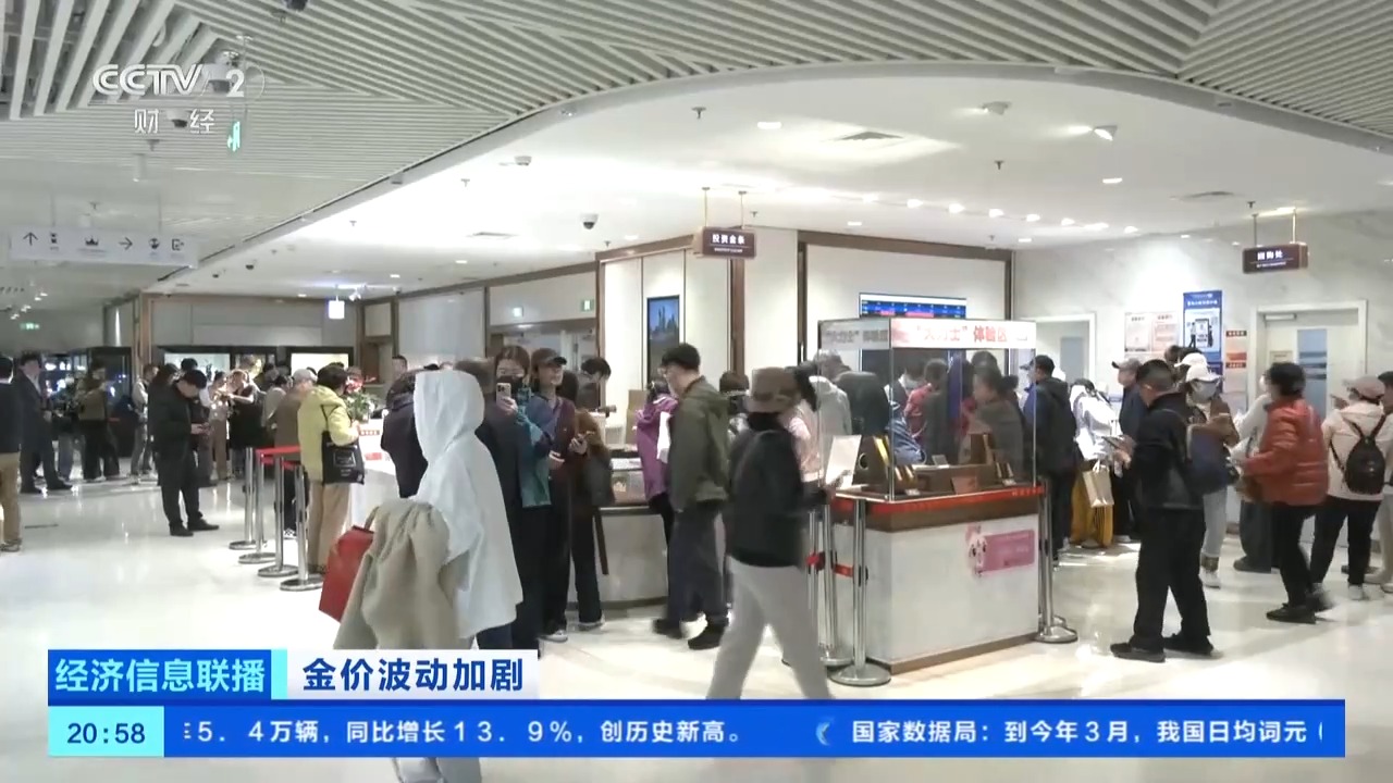 總臺央視記者 王聞聰:在北京市西城區(qū)的一家金店,工作日的下午4時,這里的消費者絡(luò)繹不絕,有不少消費者在現(xiàn)場關(guān)注實時的黃金價格,準(zhǔn)備隨時入手。在現(xiàn)場,購買黃金投資產(chǎn)品的消費者要多于購買黃金飾品的消費者。這周的客流量比上周增長了30%左右。