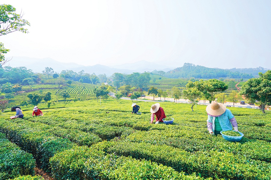 柏塘鎮(zhèn)萬畝茶園,滿山茶飄香,農(nóng)民采茶忙。