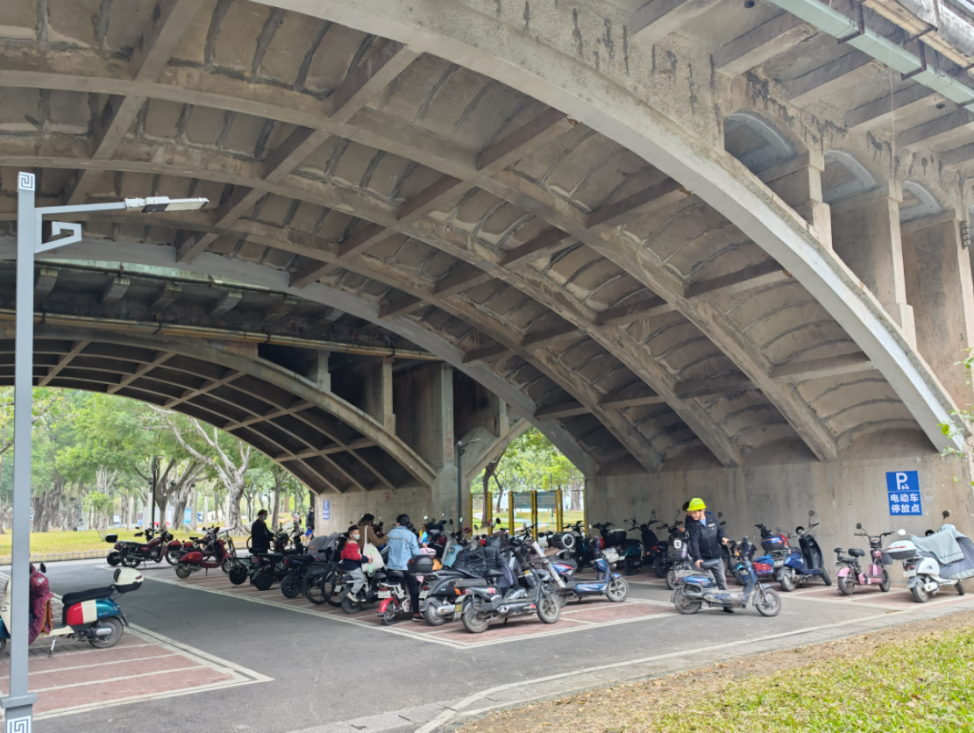 市東江公園服務(wù)中心副主任陸虹介紹,為解決非機(jī)動(dòng)車停放問題,市市政園林事務(wù)中心實(shí)施了非機(jī)動(dòng)車停放點(diǎn)改造工程,改造工程將公園沿濱江東路人行道鋪設(shè)地磚、劃線設(shè)置為非機(jī)動(dòng)車停放點(diǎn),在東江大橋橋底橋墩處、公園馬路對(duì)面的東江大橋橋墩處等地方增設(shè)非機(jī)動(dòng)車停車位,設(shè)有總共約460個(gè)位,可充分滿足市民停車需求,沿路設(shè)置電動(dòng)車停放點(diǎn)引導(dǎo)牌。