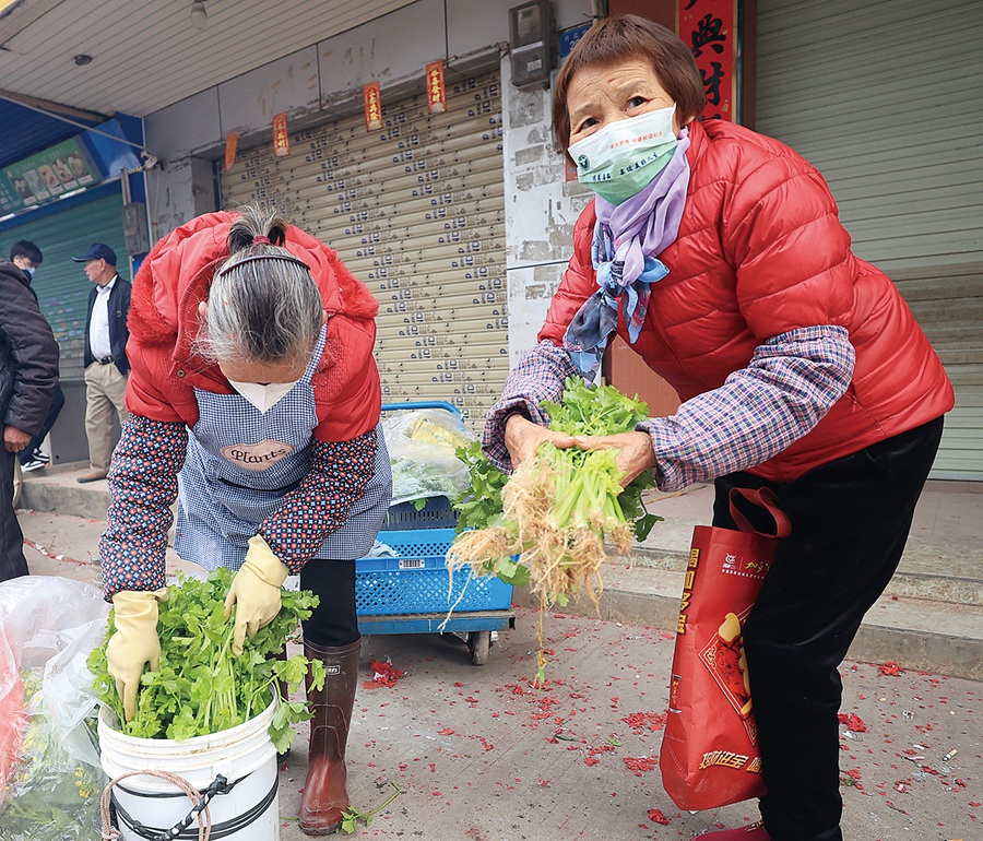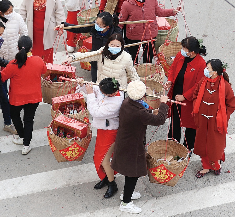 婆婆、妯娌為媳婦分擔(dān),接力挑起籮筐。