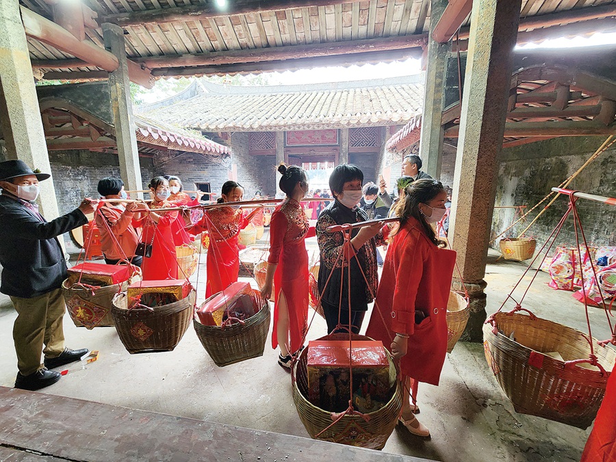 到了祠堂門(mén)口,必須由當(dāng)年添丁的媳婦挑著籮筐進(jìn)入祠堂上燈。怕籮筐重累著媳婦的婆婆,緊跟其后幫忙托舉著扁擔(dān),為媳婦減輕重量,關(guān)愛(ài)之情溢于言表。上完燈后,添丁的家庭大合影更是記錄了這一歷史時(shí)刻。