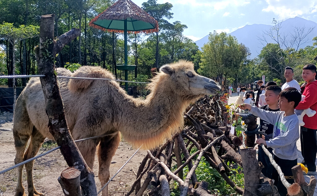 游客在浮生六季生態(tài)園與動(dòng)物親切互動(dòng)。