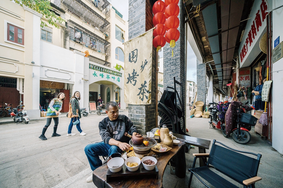 越來越多的游客和本地市民走進(jìn)水東街,來到陳智揚(yáng)的店里參觀、消費(fèi)。每一次,陳智揚(yáng)和妻子都熱情地招呼著客人。客人不多時(shí),他們便與朋友繪彩瓷、品茶聊天,生活與生意,融為一體。