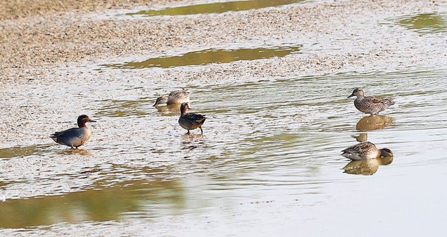 去年12月起,南遷的候鳥陸續(xù)來(lái)到惠州各地過(guò)冬,國(guó)家一級(jí)重點(diǎn)保護(hù)野生動(dòng)物黑臉琵鷺、東方白鸛也首次在三棟鎮(zhèn)的該水塘出現(xiàn)。東方白鸛作了短暫停留,又遷往其他地方。黑臉琵鷺則留了下來(lái),與陸續(xù)遷徙過(guò)來(lái)的長(zhǎng)腳反嘴鷸、林鷸、琵嘴鴨等鳥類集聚在這一水塘周邊,與白鷺、白鹡鸰、灰鷺鳥等留鳥歡聚一堂,整個(gè)冬季在一起捕捉魚蝦,享受惠州的美食。隨著天氣轉(zhuǎn)暖,長(zhǎng)腳反嘴鷸、林鷸等已經(jīng)陸續(xù)北遷,黑臉琵鷺近日還在享受著惠州的美食,為北遷積聚能量。本報(bào)記者去年底以來(lái)陸續(xù)記錄了它們的歡聚時(shí)光,期待它們今年冬季再到惠州,享受這里良好的自然環(huán)境。