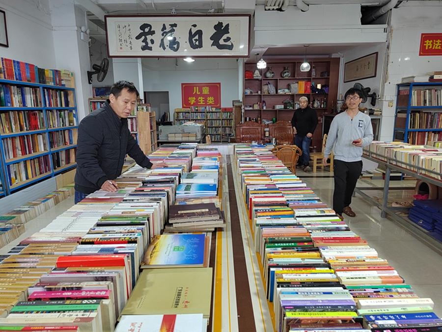 地?cái)偔h(huán)境不適合閱讀,一些淘書者“慫恿”白云龍換個(gè)好地方。再三考量后,白云龍?jiān)诨莩菂^(qū)南壇一條幽靜的巷子租了間低價(jià)店鋪,開(kāi)啟門店經(jīng)營(yíng)模式。