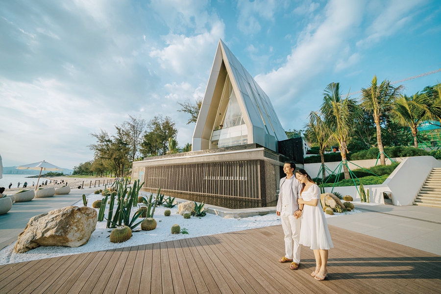 玫瑰禮堂選址惠東縣巽寮濱海旅游度假區(qū)銀海灣沙灘。禮堂矗立在海岸之上,是綻放在濱海與沙灘的璀璨明珠,更是網(wǎng)紅達(dá)人追捧的旅行打卡地標(biāo)。濱水而建的禮堂,意在將建筑、天空、水面、沙灘融為一體,成為一個(gè)集家庭聚會(huì)、情侶漫游、網(wǎng)紅打卡、親子互動(dòng)等多功能的空間場域。