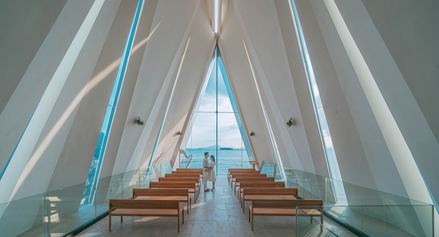 禮堂矗立在海岸之上,是網(wǎng)紅達(dá)人追捧的旅行打卡地標(biāo)。