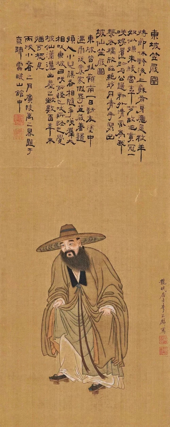 客家涼帽又稱之為“蘇公笠”,清人梁紹壬《兩般秋雨庵隨筆》認(rèn)為是“眉山遺制”。蘇東坡與竹笠的關(guān)系,早在宋人李公麟《東坡笠屐圖》就有展現(xiàn),這一形象在后來(lái)的文人畫中經(jīng)常出現(xiàn)。與文人將蘇東坡想象為隱士不同,惠州民間對(duì)于蘇軾與笠的想象,更加貼近農(nóng)耕生活。蘇東坡經(jīng)常為民眾祈雨,這在其相關(guān)祈雨文中可見一斑。竹笠在惠州地區(qū)曾經(jīng)在祈雨儀式中出現(xiàn),“蘇公笠”的說法其來(lái)有自。