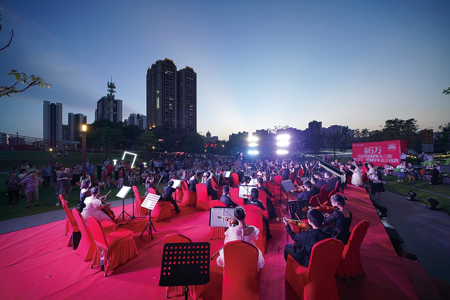 5月28日晚,惠州文化館館辦團隊惠州愛樂青少年樂團受邀到仲愷高新區(qū)中星公園的草坪公園,舉行了一場動漫主題音樂會。當(dāng)晚,惠州愛樂青少年樂團的小樂手們在公園的草地上,輕快地奏響美妙的音樂。曼妙的音符在初夏的落日余暉中飄蕩,數(shù)百位市民近距離感受音樂的魅力,樂團浪漫的演奏讓公園的夜晚沉醉。