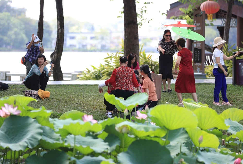 夏日荷花這道美麗的風景線讓市民趨之若鶩。