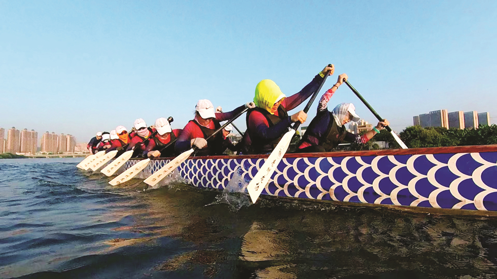 “別看我們是女隊,速度、耐力練習(xí)和陸上訓(xùn)練一樣不少!庇啾嬖V記者,隊員們堅持訓(xùn)練的勁頭值得點贊,“我們女子龍舟隊出勤率是最高的”。