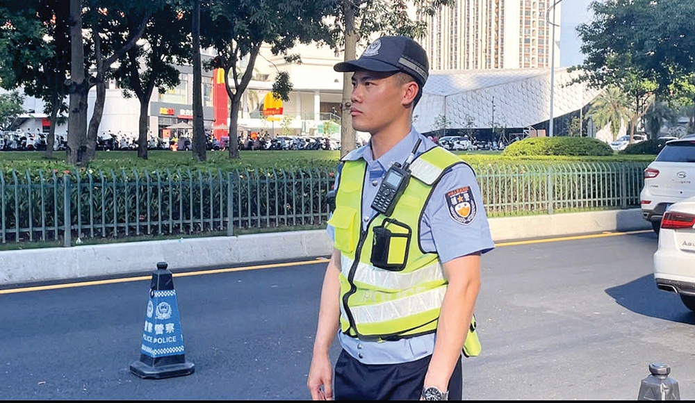 交警頂烈日指揮交通。