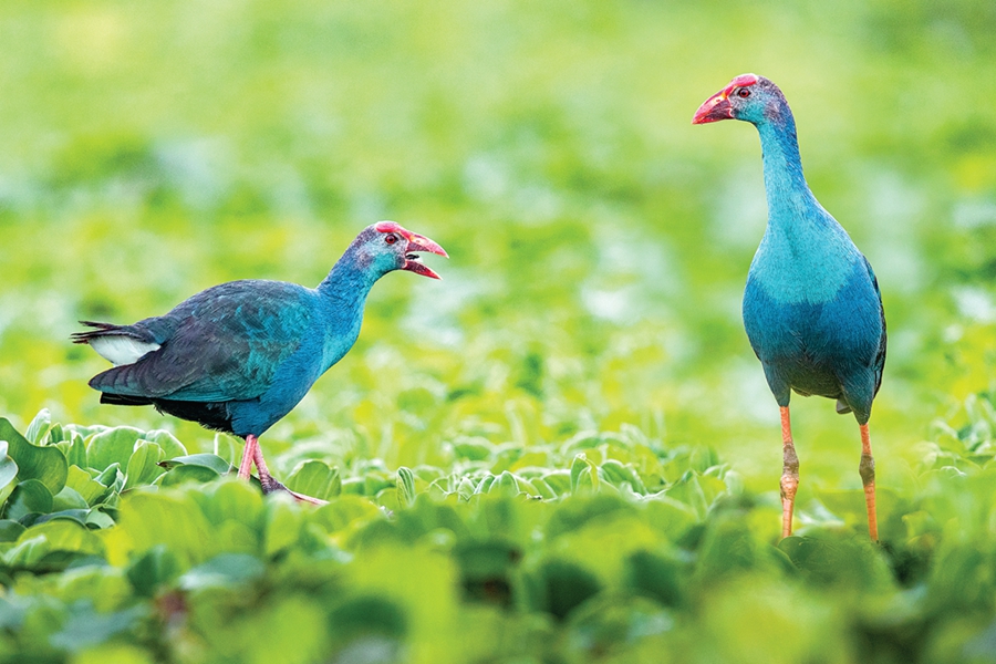 紫水雞是一種極其珍貴的大型水鳥,被譽(yù)為“世界上最美麗的水鳥”,其身上除尾下覆羽為白色外,其余羽毛均為藍(lán)紫色,腳暗紅色。紫水雞是留鳥,活動于海拔1900米以下的流速較緩或平靜、多植被覆蓋的開闊水面和富營養(yǎng)化的濕地。該物種主要分布于非洲、亞洲南部和大洋洲,在我國僅罕見于西南部地區(qū),屬世界級瀕危鳥類,19世紀(jì)后在世界各地都非常罕見。