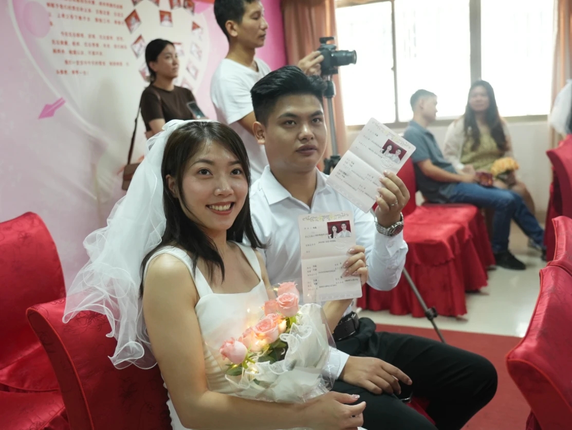呂先生和劉小姐領(lǐng)到結(jié)婚證,曬出“小紅本”,開心地在鏡頭前做出心型的手勢!拔姨匾膺x了七夕這個美好的日子和女友前來領(lǐng)證!毙氯藚蜗壬痛蠹乙黄鸱窒怼疤鹈邸。他和女友是研一時開始談戀愛的,研究生畢業(yè)后一起通過人才引進(jìn)的方式來到惠州工作安家,“我們都是北方人,在這里相互依靠建起小家!眲⑿〗銤M眼幸福地告訴記者,她和呂先生經(jīng)過六七年的戀愛,共同經(jīng)歷了人生中的求學(xué)奮斗時光,最讓她感動的是疫情期間的一次經(jīng)歷,“他當(dāng)時身體很不舒服,我發(fā)熱了,他還半夜里背著我去醫(yī)院,他是一個很有責(zé)任感的人!