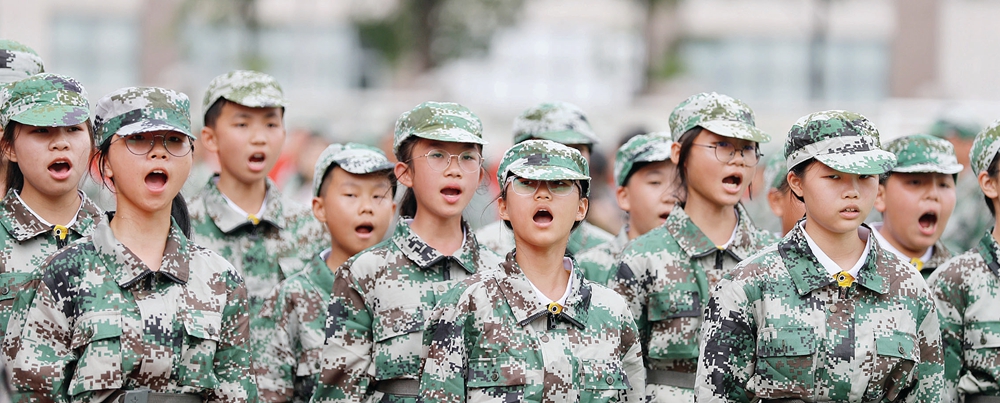 軍訓(xùn)中,惠臺中學(xué)新生精神抖擻。