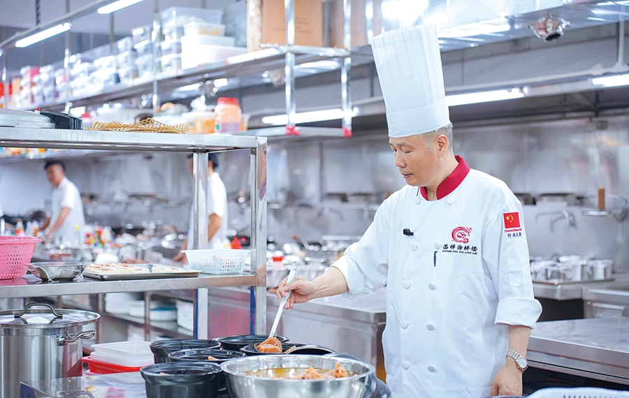 好的食材還需要搭配好廚藝,才能成就美味。昌樺海鮮樓的后廚團(tuán)隊一直由名廚主理,并聘請了多位資歷豐富的老廚師。“昌樺海鮮樓的后廚人員一直相當(dāng)穩(wěn)定,這也是我們菜品能保持水平的重要因素。如今,酒樓的行政總廚是惠州名廚陳進(jìn)樂,團(tuán)隊很多師傅都是從老店一路跟隨到現(xiàn)在。”黃楚斌說,他們對菜品的把控也是相當(dāng)嚴(yán)格,酒樓的管理人員要定期試菜,從內(nèi)部開始對味道把關(guān)。