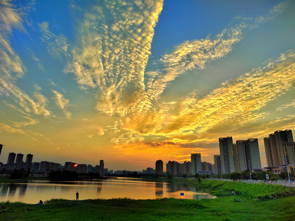 10月14日18時許,惠城區(qū)上空出現(xiàn)夕陽余暉,天空中多種色彩碰撞,云彩猶如鳳凰展翅,美麗如畫,吸引市民駐足去定格這一美好瞬間。