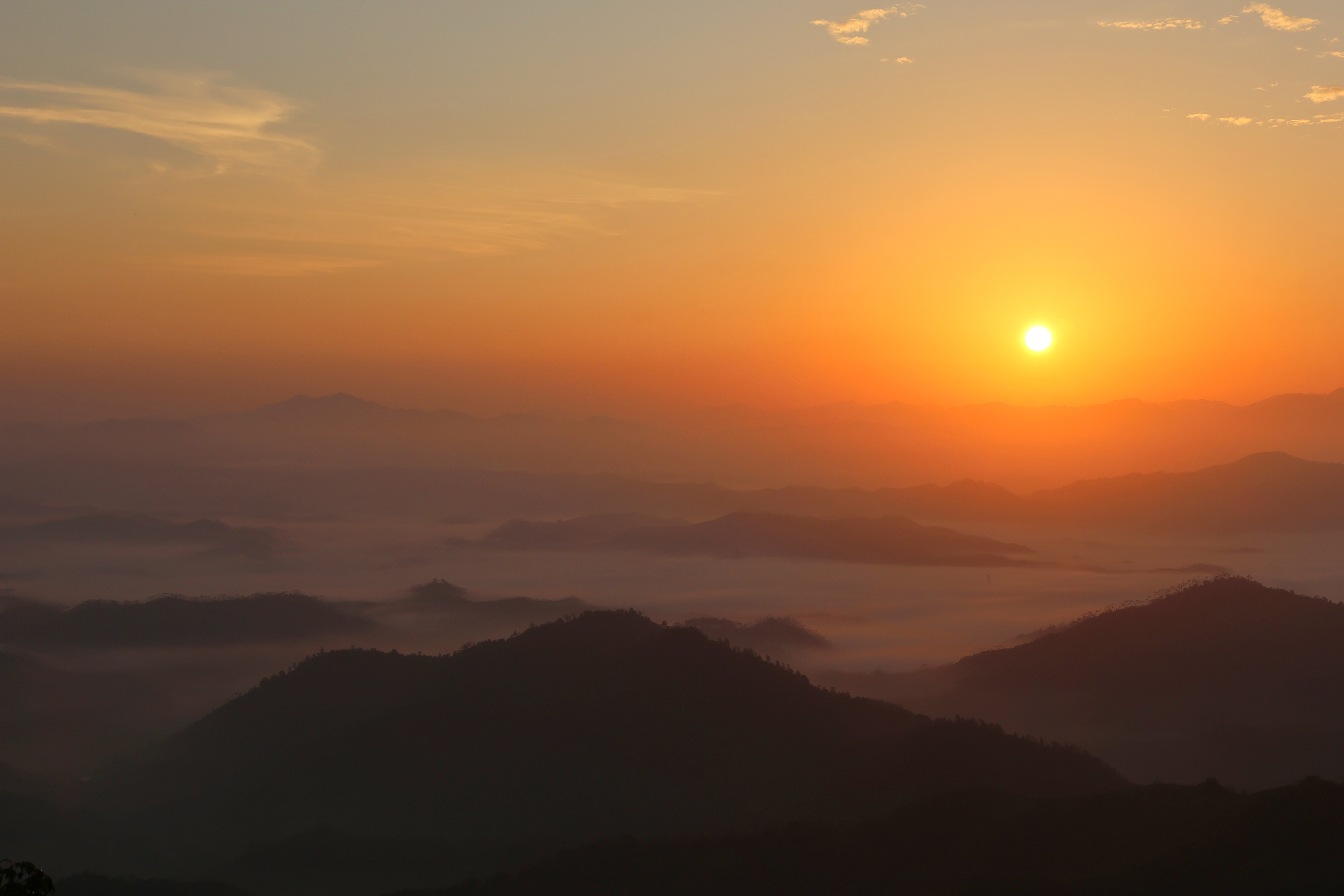 近日,位于惠州市惠東縣東北部山區(qū)的寶口鎮(zhèn)出現(xiàn)壯觀云海日出,美不勝收。從遠(yuǎn)處眺望,被云海包圍的山巒只剩下輪廓,若隱若現(xiàn)。云海的上方是橘黃色的天空,幾縷長(zhǎng)條形彩霞被映照得金光閃閃,云海彩霞相映成趣,良好的生態(tài)植被,構(gòu)成一幅壯美的生態(tài)畫(huà)卷。通訊員謝銳勤 攝