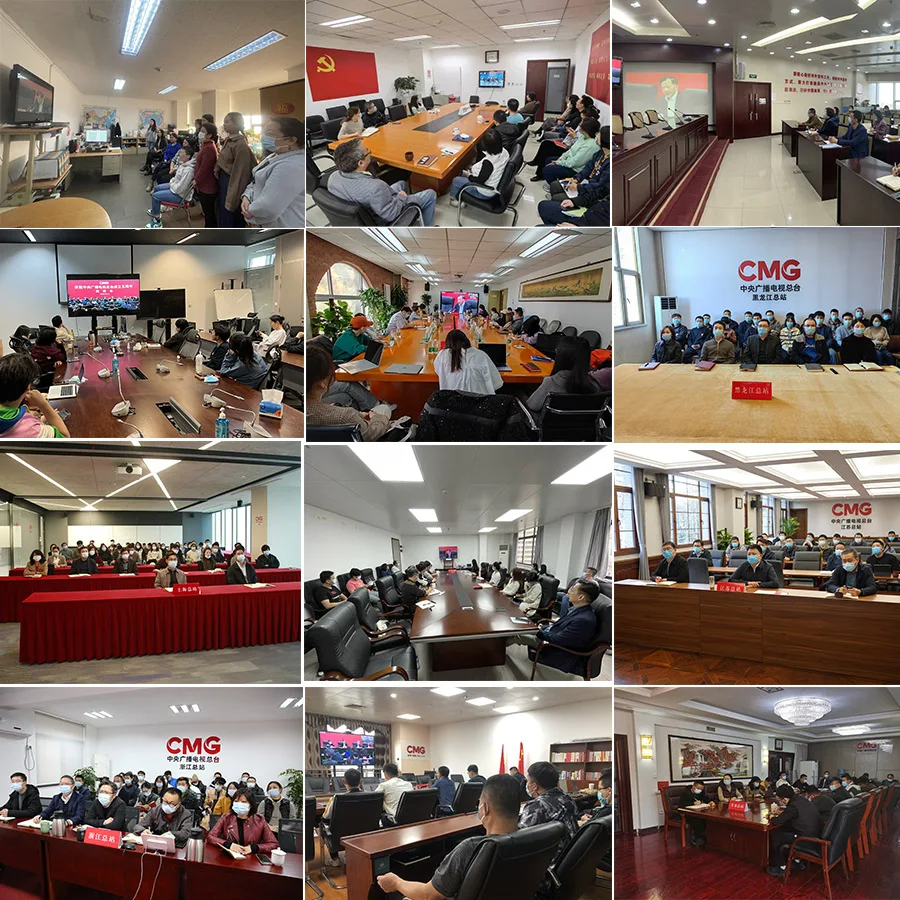 總臺各部門各單位和臺屬公司主要負責同志,總臺干部員工代表現(xiàn)場參會。總臺四址辦公區(qū)全體人員、國內(nèi)各地方總站人員分別通過閉路電視系統(tǒng)、視頻會議系統(tǒng)同步收看會議實況。