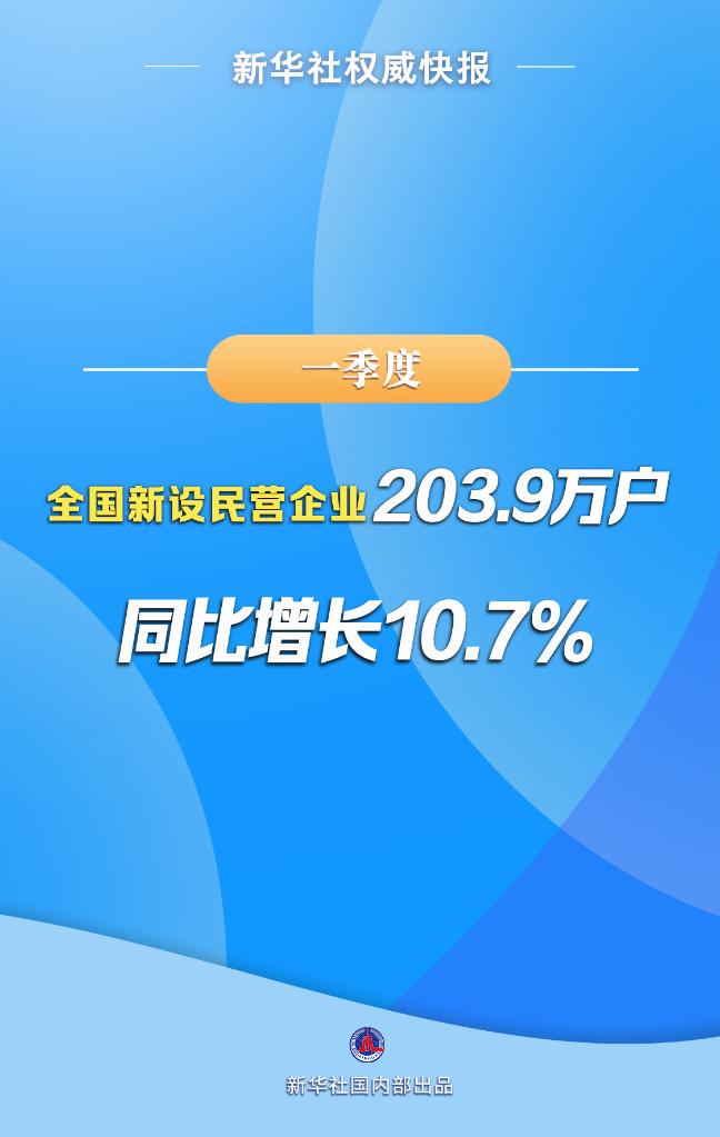 記者4月27日從市場(chǎng)監(jiān)管總局獲悉,一季度,全國(guó)新設(shè)民營(yíng)企業(yè)203.9萬(wàn)戶,同比增長(zhǎng)10.7%,我國(guó)民營(yíng)企業(yè)展現(xiàn)出強(qiáng)大的內(nèi)生動(dòng)力。