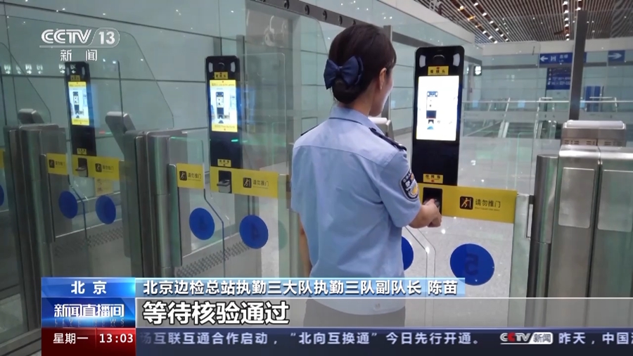 北京邊檢總站執(zhí)勤三大隊執(zhí)勤三隊副隊長 陳苗:首先,讓我們來放入證件,以中國電子因私普通護(hù)照為例,我們需要將國徽的一面向上,平放到閱讀設(shè)備的玻璃上,這里大家不要忘記拿走自己的證件。