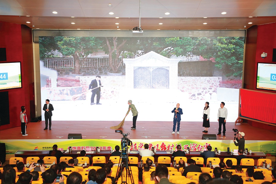 1月9日下午,仲愷高新區(qū)科融創(chuàng)業(yè)大廈的學(xué)術(shù)報(bào)告廳里,一會(huì)兒傳來(lái)鏗鏘的鑼鼓聲,一會(huì)兒是悠揚(yáng)的小提琴樂(lè)曲聲,一會(huì)兒又是抑揚(yáng)頓挫的吟誦聲……這是在開音樂(lè)會(huì)嗎?非也。仲愷高新區(qū)2022年度“抓黨建促鄉(xiāng)村振興”擂臺(tái)賽年終集中競(jìng)演正在這里上演。人居環(huán)境整治考核、實(shí)地評(píng)分兩項(xiàng)考核排名前12的面上成效組行政村、3個(gè)重點(diǎn)項(xiàng)目組以及2條示范帶組等17支隊(duì)伍,通過(guò)情景劇、歌舞快板、短視頻等豐富多樣的形式,亮實(shí)績(jī)、講經(jīng)驗(yàn)、找差距、謀發(fā)展,曬出各自“成績(jī)單”,展開激烈比拼。