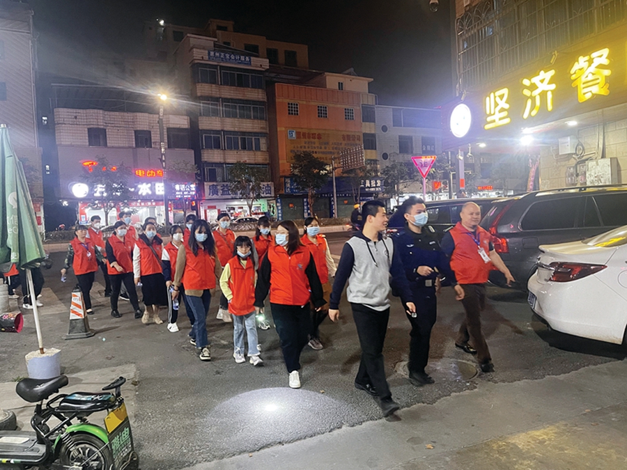出租屋管理黨支部組織志愿者夜巡。 惠州日報記者楊敬賀 通訊員劉素梅 攝