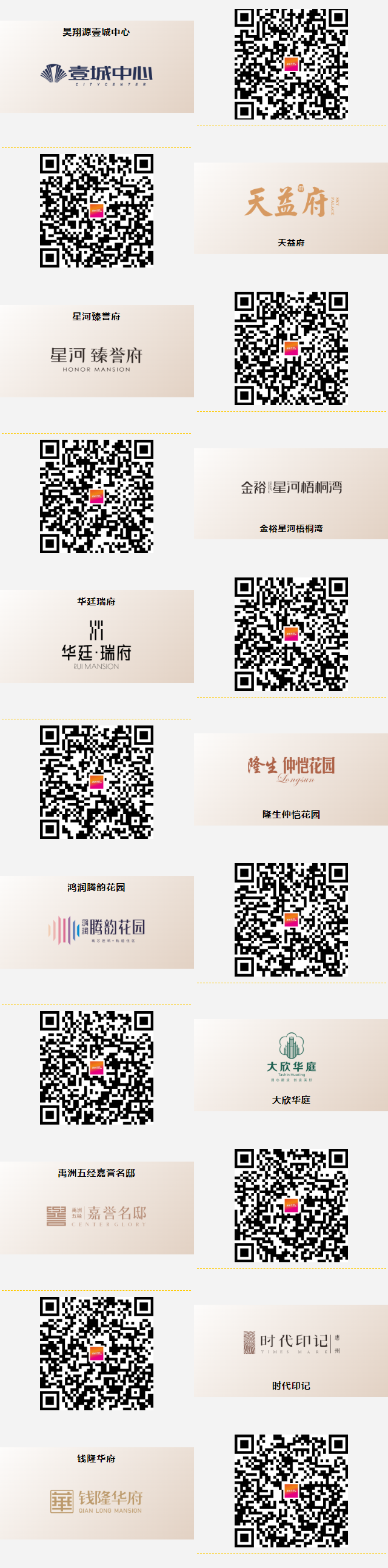 昊翔源壹城中心、天益御府、星河臻譽府、 金裕星河梧桐灣、華廷瑞府、隆生仲愷花園、鴻潤騰韻花園、大欣華庭、禹洲五經(jīng)嘉譽名邸、時代印記、錢隆華府