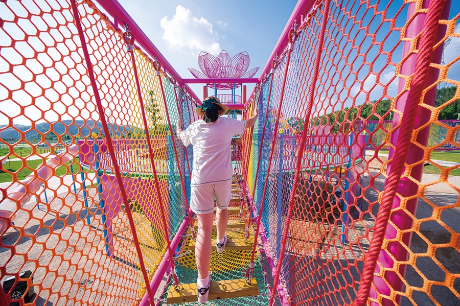 潼心谷位于仲愷高新區(qū)潼湖鎮(zhèn),這里周邊有山林和村莊,空氣十分清新,距離東江邊也不遠(yuǎn)。走進(jìn)園區(qū),一側(cè)就是霍比特人小屋,一個(gè)小小的童話世界就在眼前,十分適合小朋友在這里游玩幻想。再往里走走,一座花朵造型的大型無動(dòng)力游樂設(shè)施呈現(xiàn)在眼前,這里有孩子們最喜歡的繩網(wǎng)、滑梯,寬大的區(qū)域,可以讓孩子們盡情攀爬走動(dòng),鍛煉孩子的身體協(xié)調(diào)能力。旁邊還有許多無動(dòng)力設(shè)施,各個(gè)年齡階段的孩子都能在這里快樂地玩耍。此外,園區(qū)還有充氣戲水池和充氣城堡。夏季炎熱,孩子可以在這里盡情地戲水玩耍,或者爬上充氣城堡挑戰(zhàn)8大關(guān)卡,體驗(yàn)到獨(dú)特的快樂。