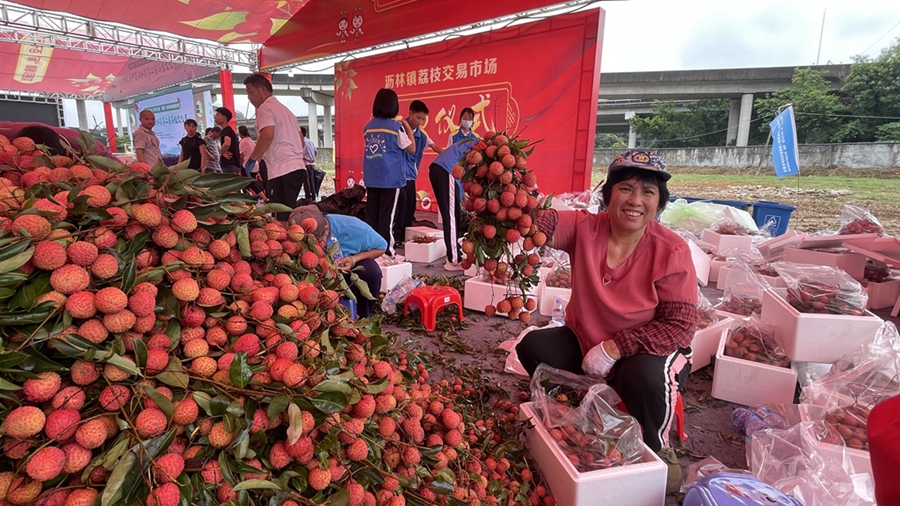 事實上,早在6月15日,瀝林鎮(zhèn)荔枝交易市場就已開市。當天不到2小時,5000多斤荔枝銷售一空。