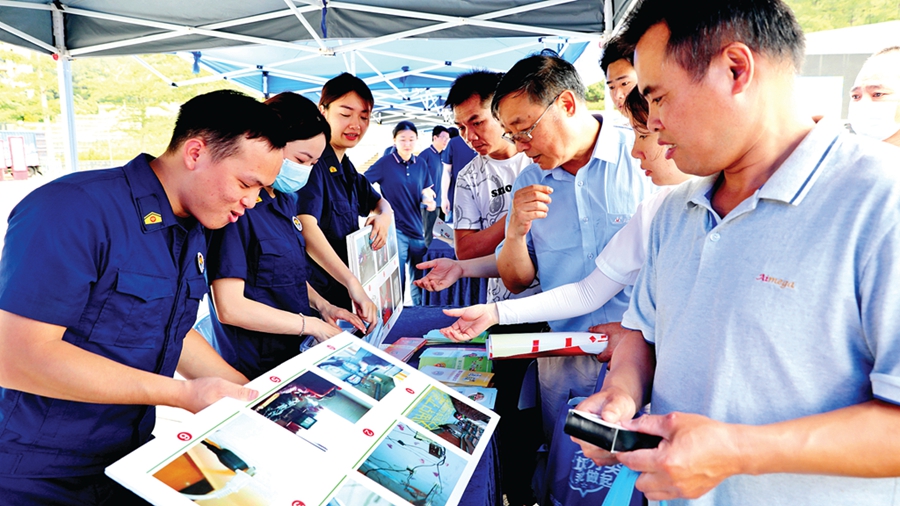 工作人員向企業(yè)員工和群眾科普安全生產(chǎn)知識(shí)。惠州日報(bào)記者邱舒婷 通訊員劉銘 攝