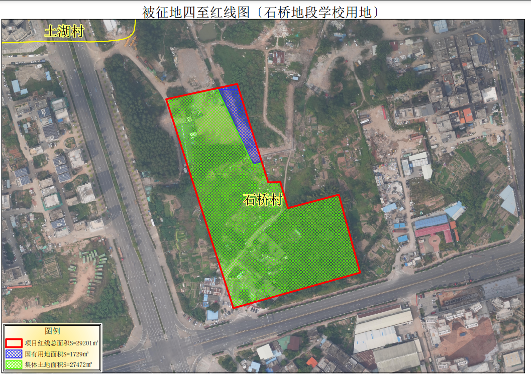 擬征收的2.7472公頃集體土地,位于惠州市惠陽(yáng)區(qū)淡水街道石橋村地段,屬惠州市惠陽(yáng)區(qū)淡水街道石橋股份經(jīng)濟(jì)合作聯(lián)合社、惠州市惠陽(yáng)區(qū)淡水街道石橋村下廖股份經(jīng)濟(jì)合作社所有的集體土地,四至范圍詳見附件《被征地四至紅線圖(石橋地段學(xué)校用地)》。