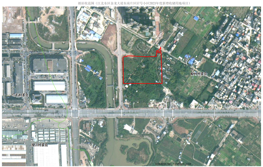 江北東區(qū)金龍大道東南片區(qū)57號(hào)小區(qū)2023年度新增收儲(chǔ)用地項(xiàng)目土地預(yù)征收