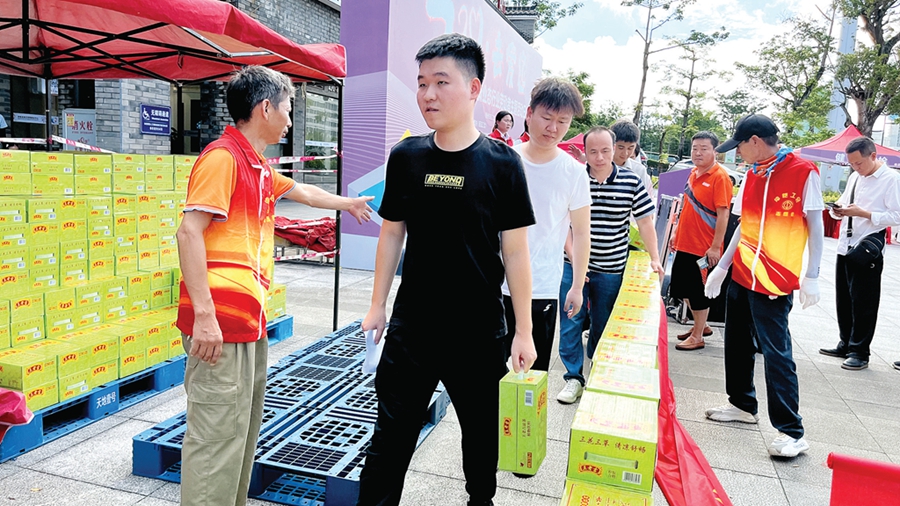 新業(yè)態(tài)勞動者獲贈清涼飲品。