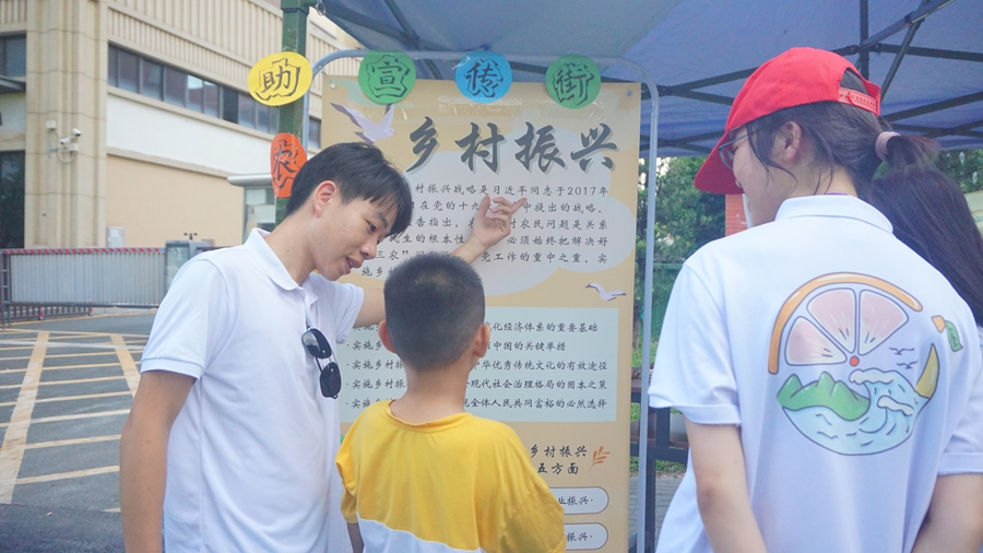 除了科普宣傳,“宣傳一條街”還布置了問(wèn)答屋攤位,以問(wèn)促學(xué),讓居民更加深刻地了解鄉(xiāng)村振興的重大意義!班l(xiāng)村振興是為了解決什么問(wèn)題提出的呢?”在聽完隊(duì)員們的講解后,大部分居民們都能很快回答出來(lái)!澳銈兇髮W(xué)生都是好樣的!”聽完科普宣講后的阿姨笑著對(duì)隊(duì)員們豎起了大拇指。