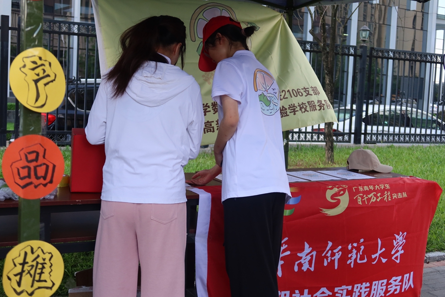 厚植宣傳科普厚土,架起鄉(xiāng)村振興橋梁。7月11日,華南師范大學(xué)數(shù)學(xué)科學(xué)學(xué)院夏日柚約暑期實(shí)踐隊(duì)來(lái)到廣東省惠州市仲愷高新區(qū)惠南實(shí)驗(yàn)學(xué)校開展“鄉(xiāng)村振興宣傳一條街”科普實(shí)踐活動(dòng),走進(jìn)鄉(xiāng)村基層,為鄉(xiāng)村振興注入青年力量,通過(guò)自身實(shí)踐提高當(dāng)?shù)鼐用襦l(xiāng)村振興意識(shí),助力鄉(xiāng)村發(fā)展!班l(xiāng)村振興宣傳一條街”活動(dòng)共設(shè)置科普亭、問(wèn)答屋、助農(nóng)產(chǎn)品攤?cè)齻(gè)攤位,通過(guò)講解鄉(xiāng)村振興知識(shí)、鄉(xiāng)村振興知識(shí)問(wèn)答、贈(zèng)送優(yōu)質(zhì)農(nóng)產(chǎn)品,為當(dāng)?shù)鼐用駧?lái)一場(chǎng)別開生面的鄉(xiāng)村振興科普活動(dòng)。