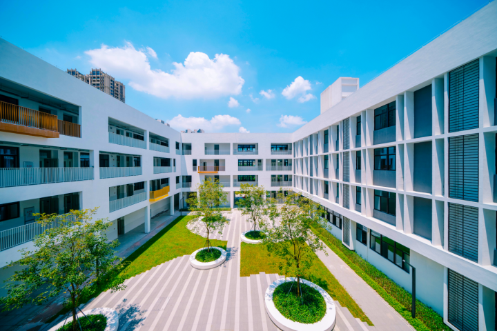 一個(gè)安全、舒適、美觀、智能的現(xiàn)代化校園已經(jīng)呈現(xiàn),仲愷校區(qū)占地面積約3.5萬(wàn)㎡,規(guī)劃54個(gè)班,其中小學(xué)36個(gè)班,初中18個(gè)班,提供約2700個(gè)學(xué)位。此外,學(xué)校還配有圖書(shū)館、美術(shù)、音樂(lè)、舞蹈、書(shū)法、計(jì)算機(jī)、科學(xué)等專(zhuān)用教室、理化生實(shí)驗(yàn)室等優(yōu)質(zhì)教學(xué)平臺(tái),配有標(biāo)準(zhǔn)足球場(chǎng)、300米環(huán)形跑道、4個(gè)標(biāo)準(zhǔn)室外籃球場(chǎng)、1棟獨(dú)立風(fēng)雨操場(chǎng)樓及室內(nèi)游泳池、室內(nèi)籃球場(chǎng)等,是目前仲愷高新區(qū)配置最完善的學(xué)校之一。